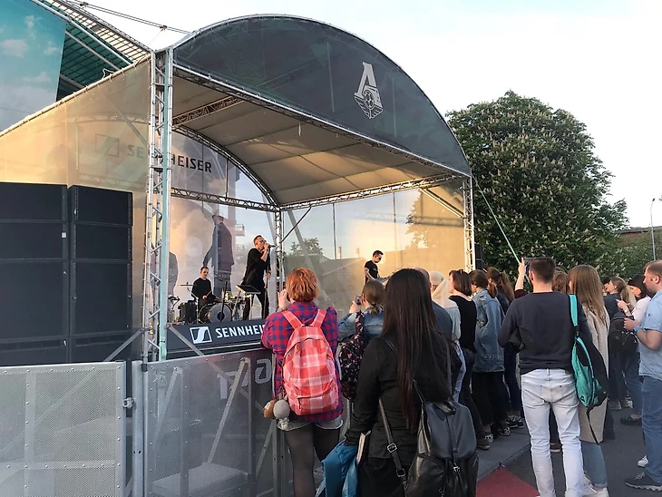 С центрального ракурса кажется, будто действие происходит на классическом столичном фесте: люди расслабленно лежат на траве с едой, чуть далее стоит сцена, на ней костромской бэнд Ocean Jet развлекает горстку фанатов. Прислушалась — что-то среднее между Kasabian и любым другим дефолтным роком из 2010-х. Но за поддержку отечественного производителя — большой плюсик.