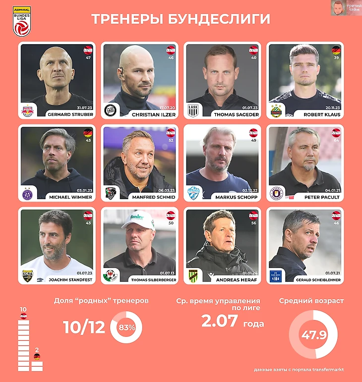 Отмечу главного тренера «Тироля» - Томаса Зильбербергера. Этот человек с труднопроизносимой фамилией руководит клубом с 2013 года, являясь настоящим старожилом лиги.