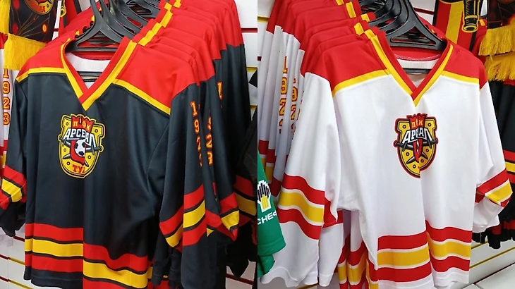 Туляки решили удивить своих болельщиков и выпустили сублимационные хоккейные свитера. Выглядит ярко и броско, а самое интересное, что из-за крупного фасона, мы наверняка сможем увидеть данную вещь и в холодное время на стадионе поверх куртки. Одобряем?