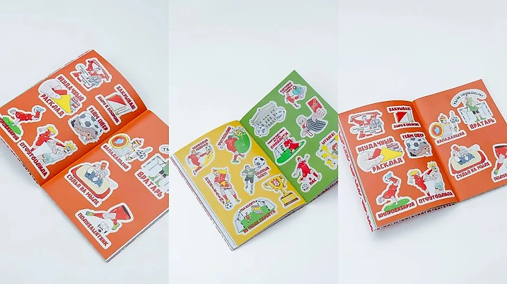Далее взгляд падает на стикербук. Интересно тем, что обычно клубы продают набор нарезанных наклеек или небольшие стикерпаки, а здесь полноценная книга. Иллюстрации простые, но наверняка придутся по душе детям и подросткам, а еще отлично будут смотреться в качестве набора стикеров для Telegram.