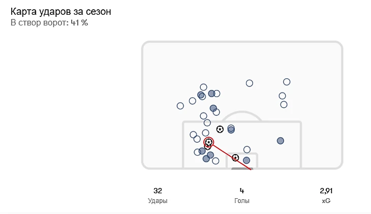 Для сравнения, среднее количество ключевых передач Коула Палмера в Челси в сезоне Английской премьер лиги 2024/2025 – 2,4*, а у Джуда Белингема в Лиги Чемпионов 2023/2024 этот показатель был максимальный и составлял 2,2*.