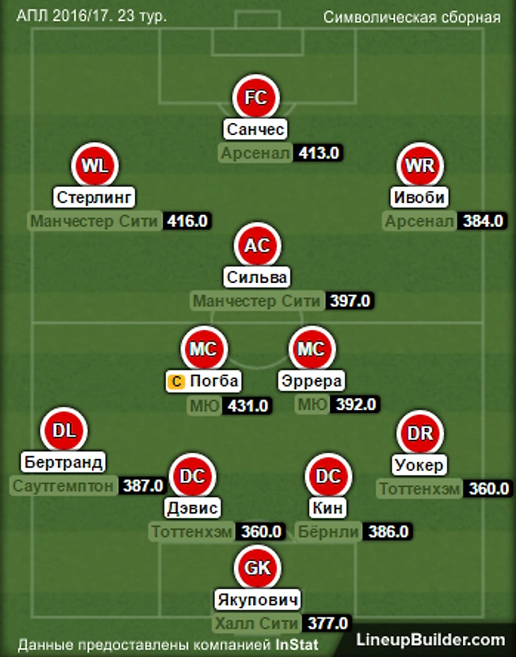 Быть может, это и неожиданно, но главным героем 23 тура стал хавбек "МЮ" Поль Погба. Манкунианцам так и не удалось взломать оборону "Халл Сити" (0:0) - бесподобен был Элдин Якупович, - но француз с отбеленной маковкой тянул команду к победе, как мог. Он и раскидывал передачи партнёрам (83; 88% точных), и бил по воротам (4 удара, но, правда, все в "молоко"), и неустанно вступал в единоборства (24; 71% выигранных), и, овладев мячом, шёл в обводку (6; 87% успешных), вынуждая соперников на себе фолить. Да и вообще, объём ТТД выдал очень внушительный (131; для сравнения у отлично отыгравшего опорника "Халла" Тома Хаддлстоуна ТТД = 91).