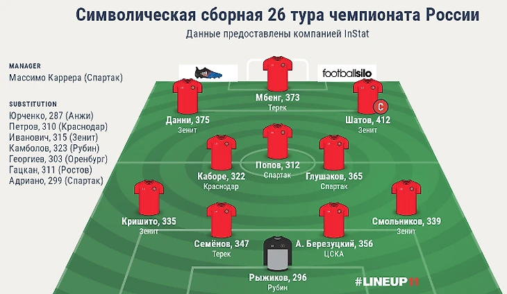 Символическая сборная собрана из футболистов с лучшими показателями InStat Index. Подробнее о компании InStat и рейтинге InStat Index вы можете прочитать здесь.