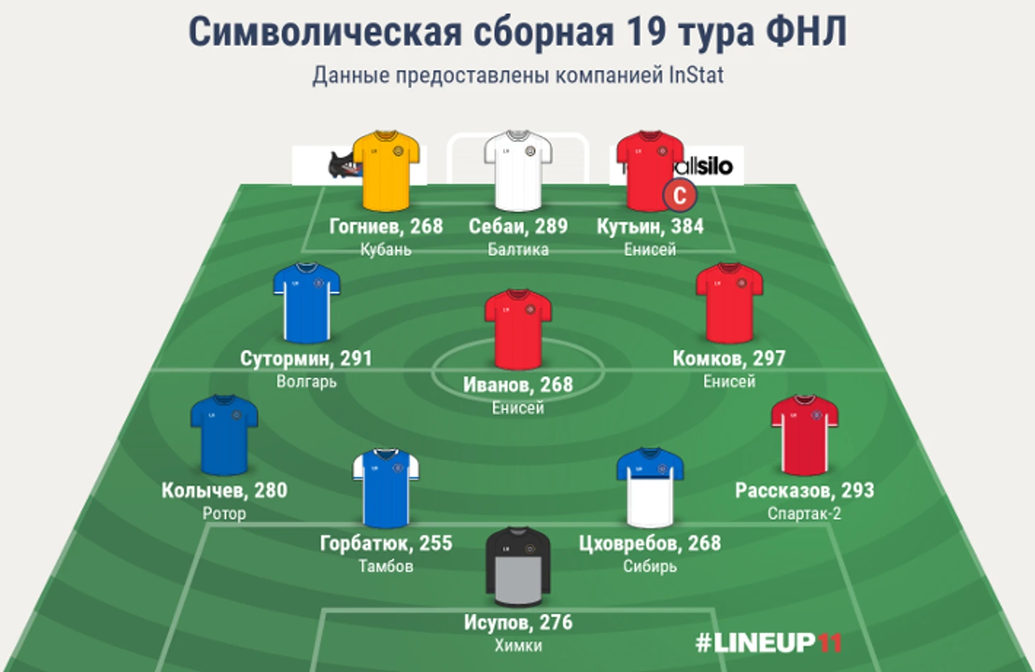 Лучшим клубом 19 тура ФНЛ стал "Енисей" со средним общекомандным рейтингом InStat Index, равным 249 баллам. Худшей же командой оказался "Авангард", набравший лишь 189 баллов.