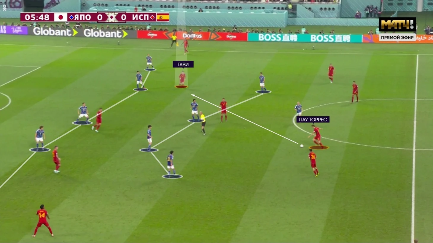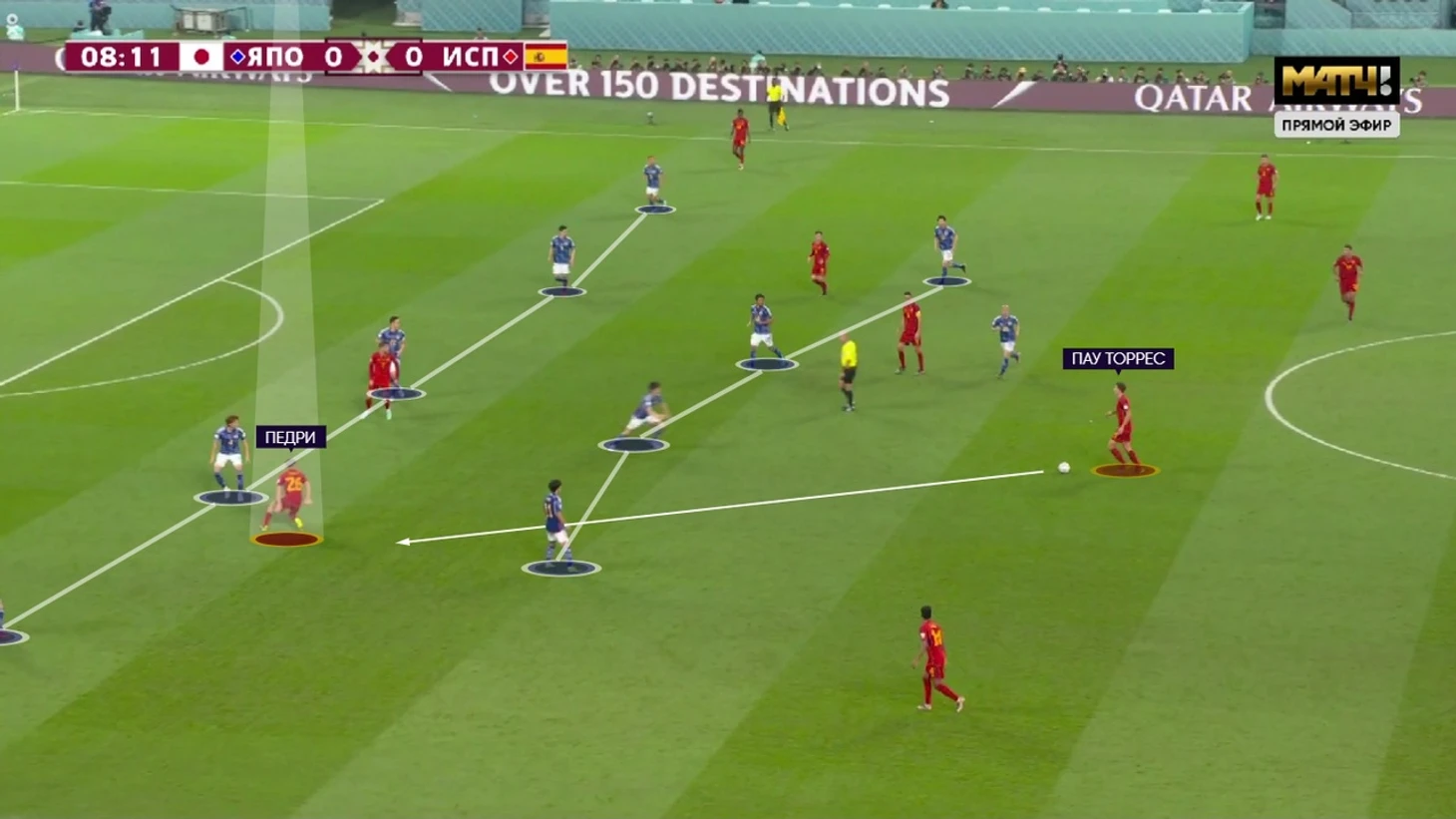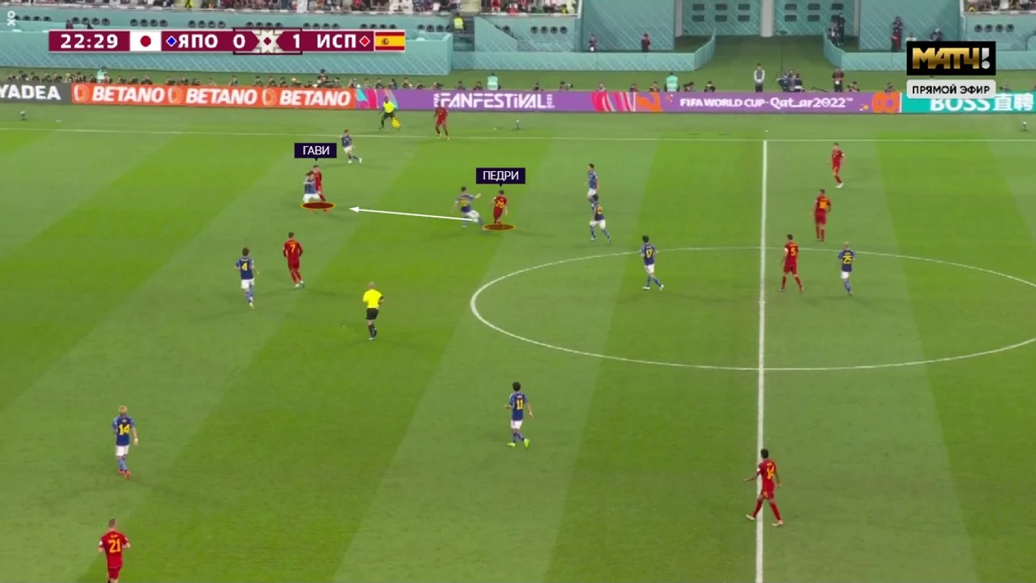 Так же стоит отметить, что Педри и Гави получали мячи между линиями соперника, несмотря на попытки Японии это предотвратить: