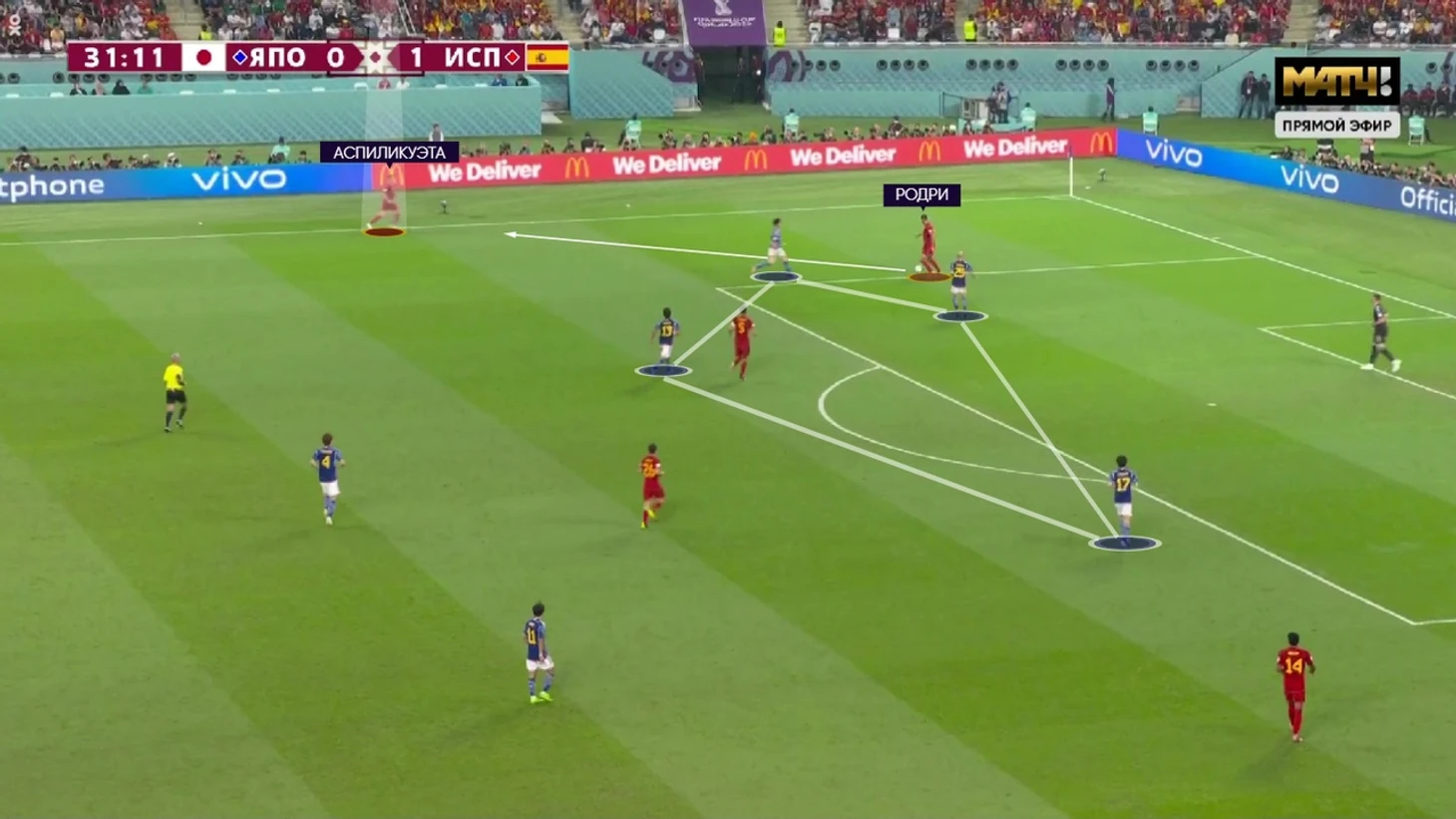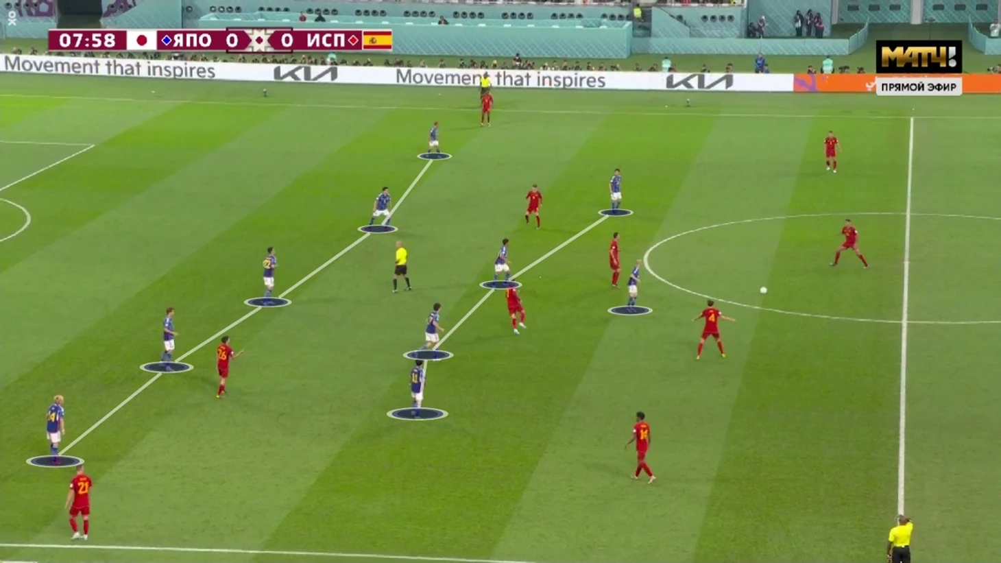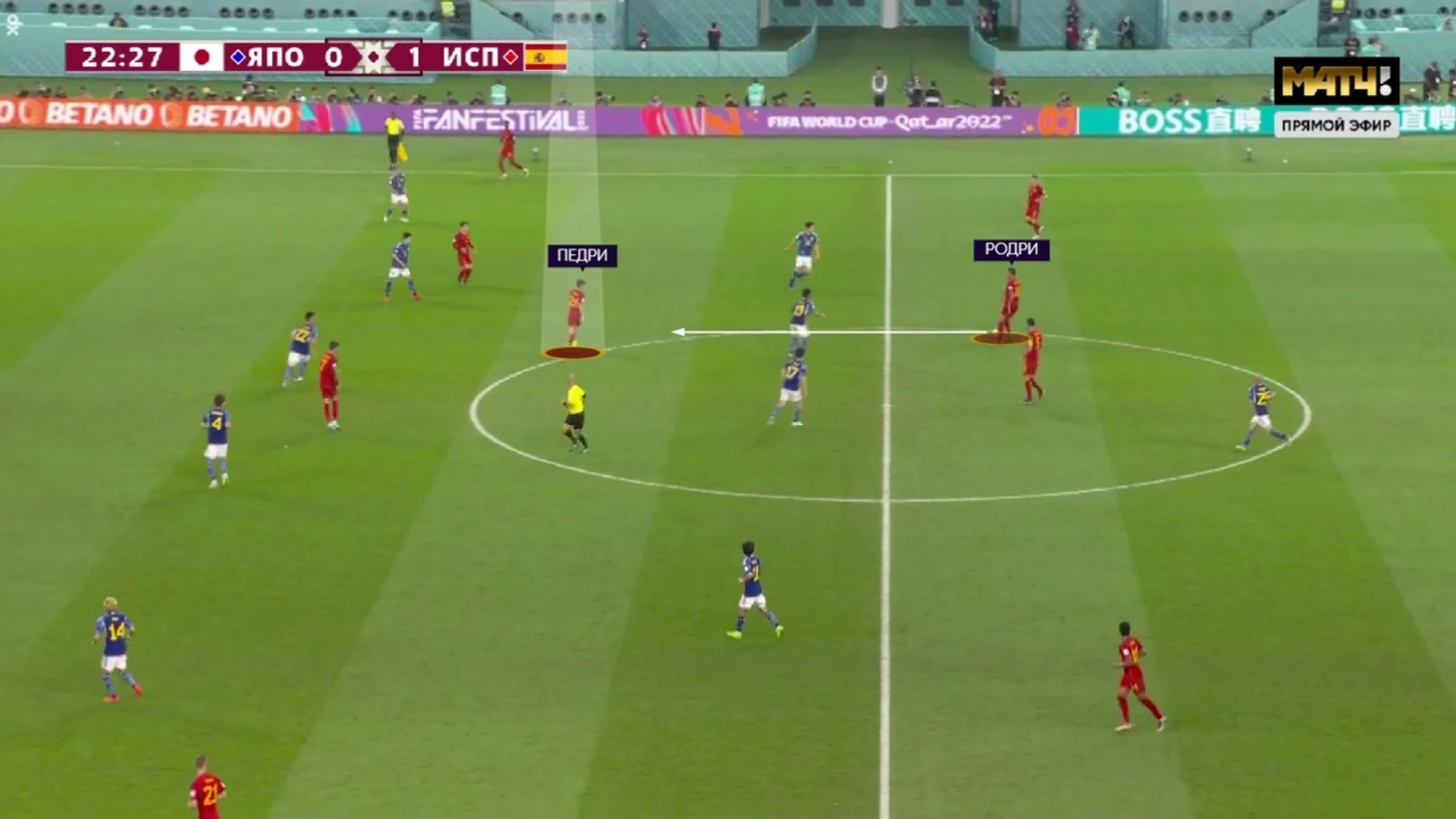Так же стоит отметить, что Педри и Гави получали мячи между линиями соперника, несмотря на попытки Японии это предотвратить: