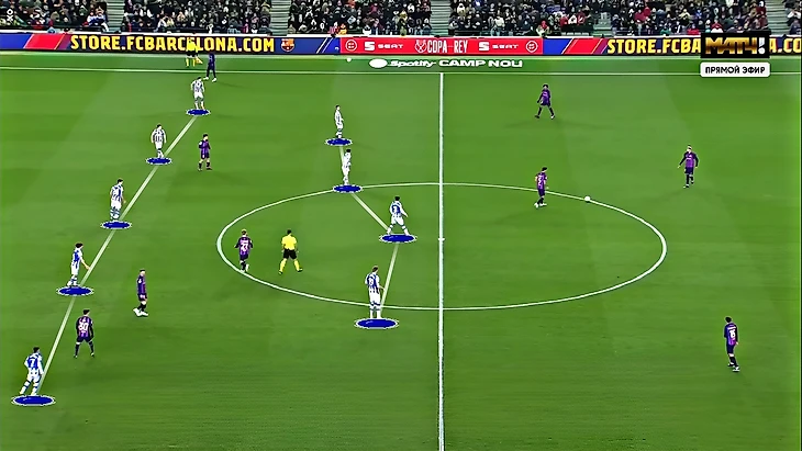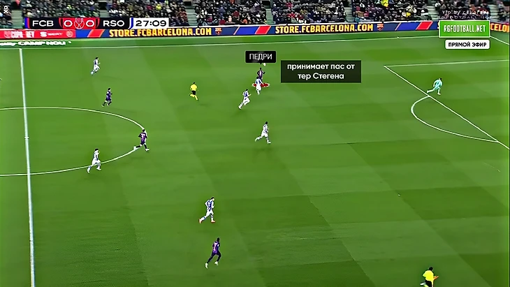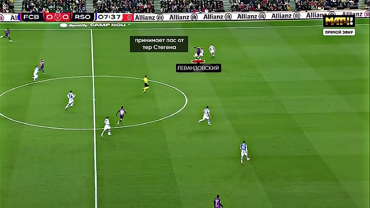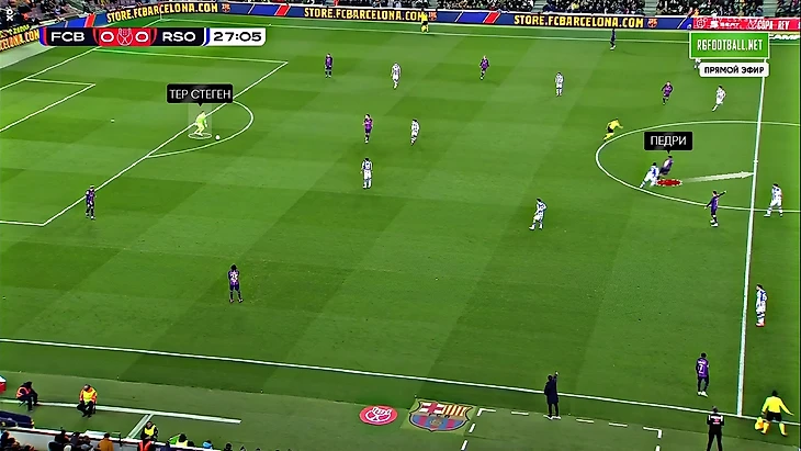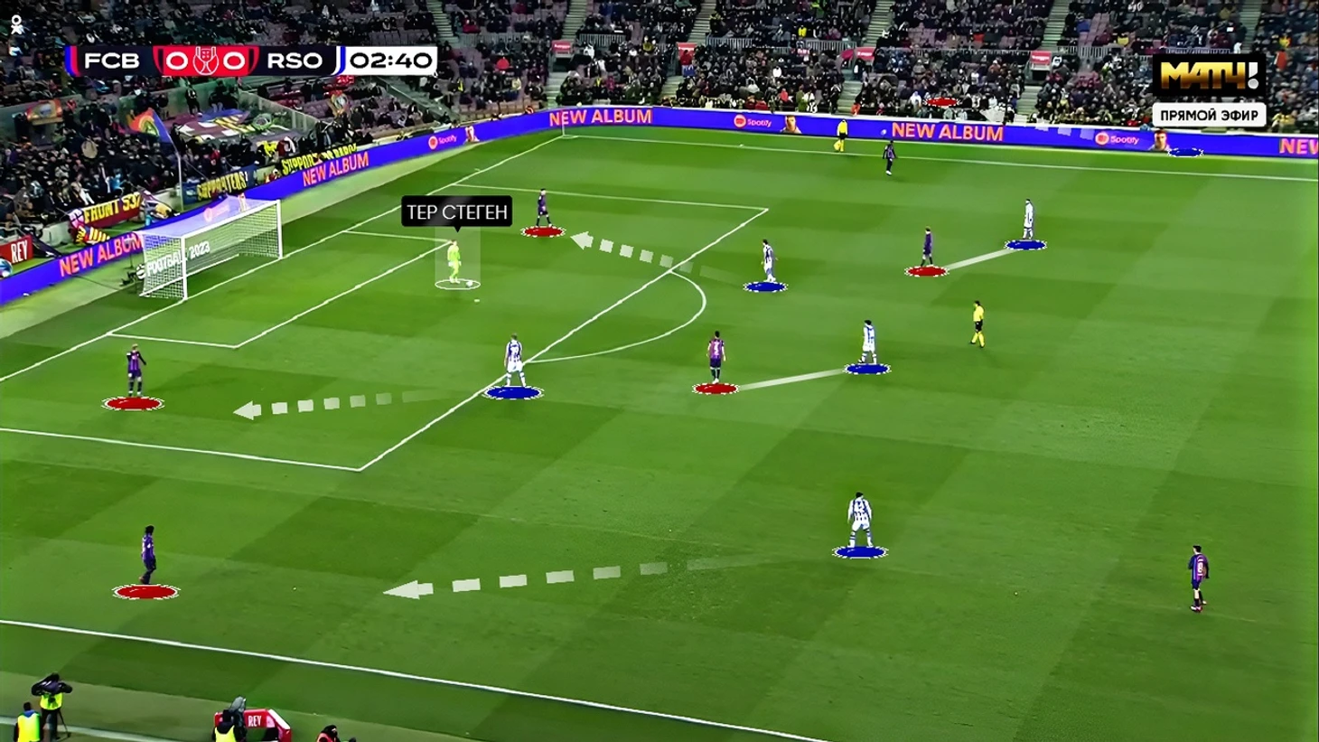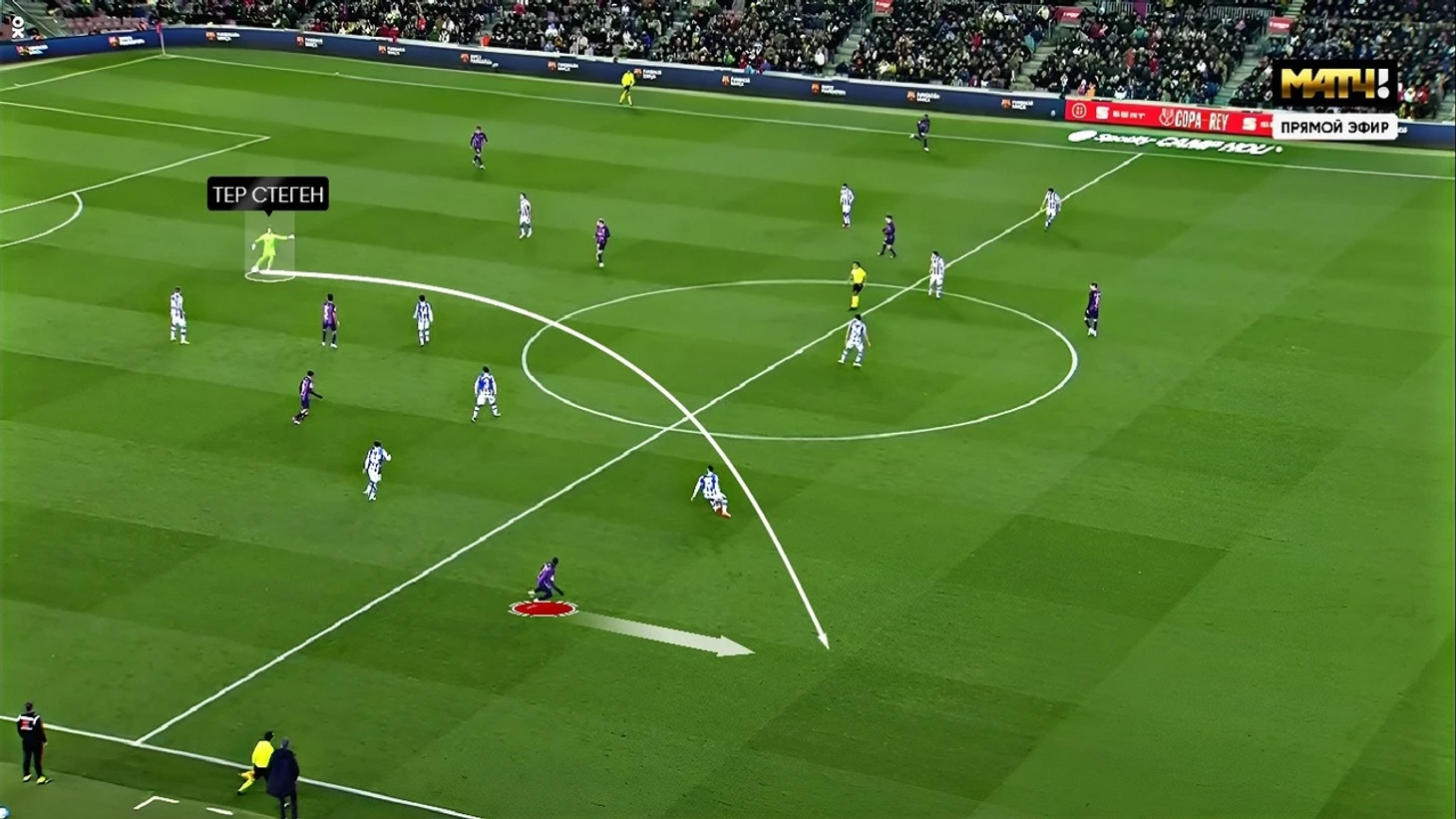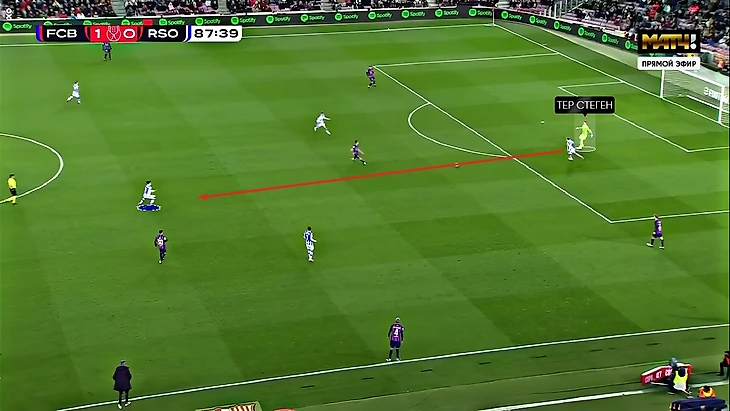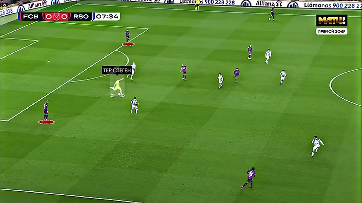 Стоит отметить, что в этих эпизодах команда прекрасно поддерживала тер Стегена рывками, ловя «Сосьедад» на высокой линии: