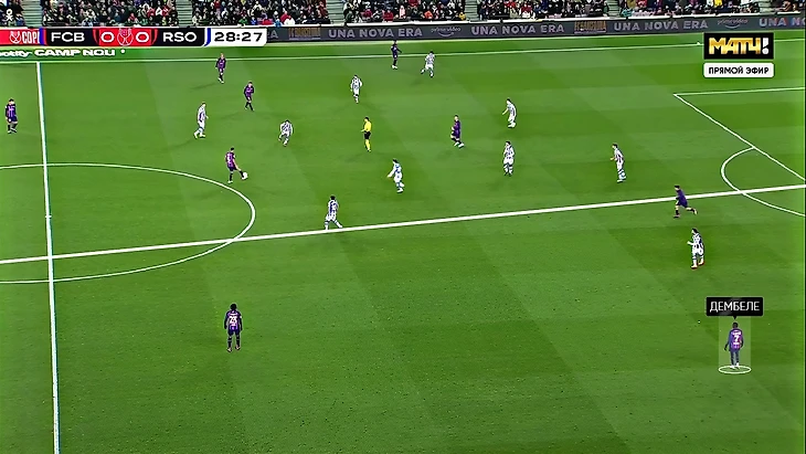 В матче получилось два разных тайма. В первом «Барселона» легко проходила прессинг «Сосьедада», а на пространстве просто разрывал Усман Дембеле. Во второй половине характер игры из-за удаления существенно изменился – гости оборонялись в низком блоке, «Барселона» тотально владела мячом (84%) и атаковала количеством. Дисциплинированная оборона «бело-голубых» позволила не допустить град моментов, из-за чего получилось организовать нервную концовку.
