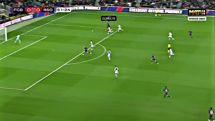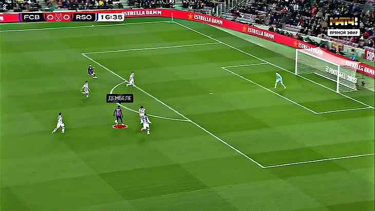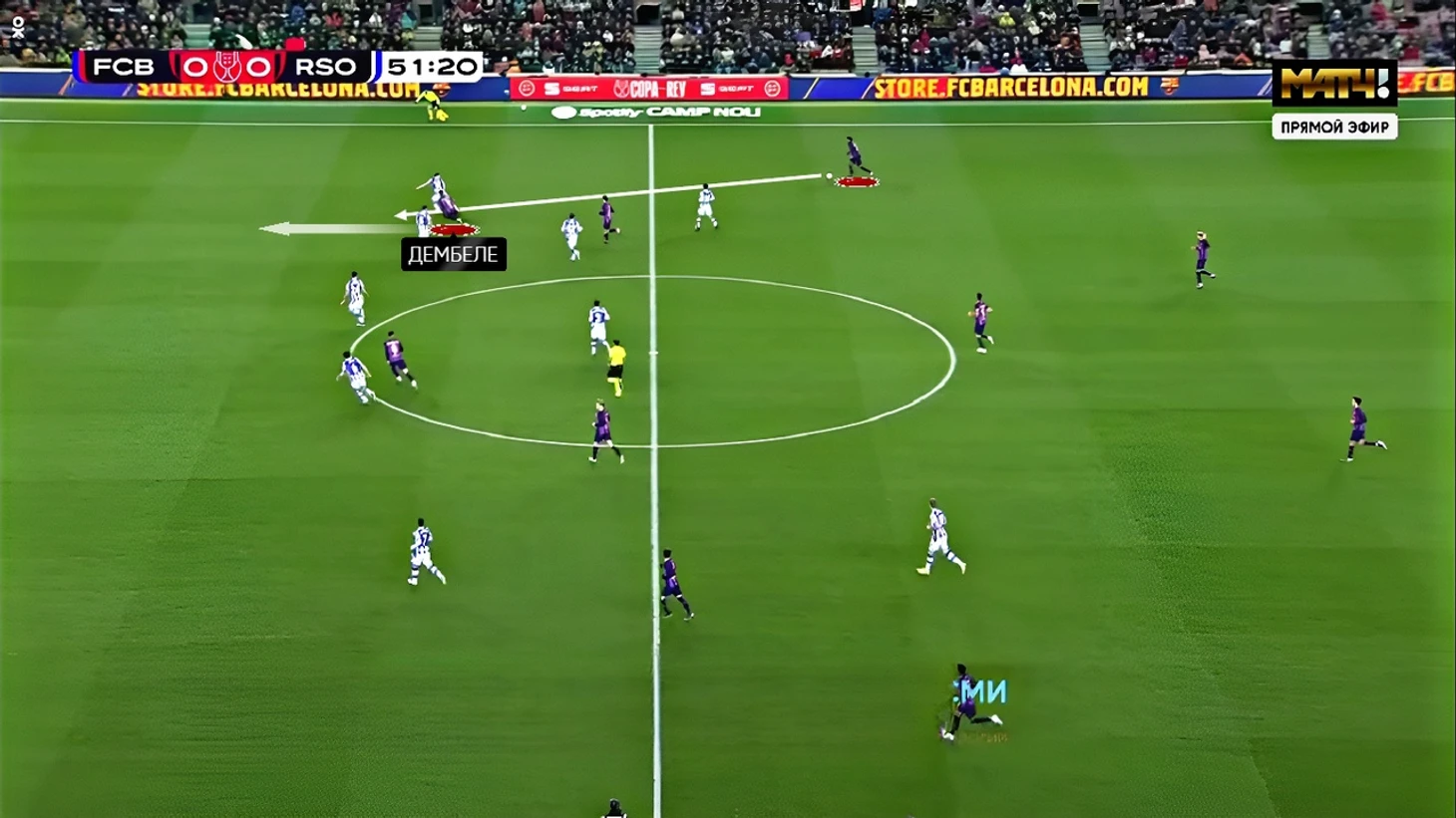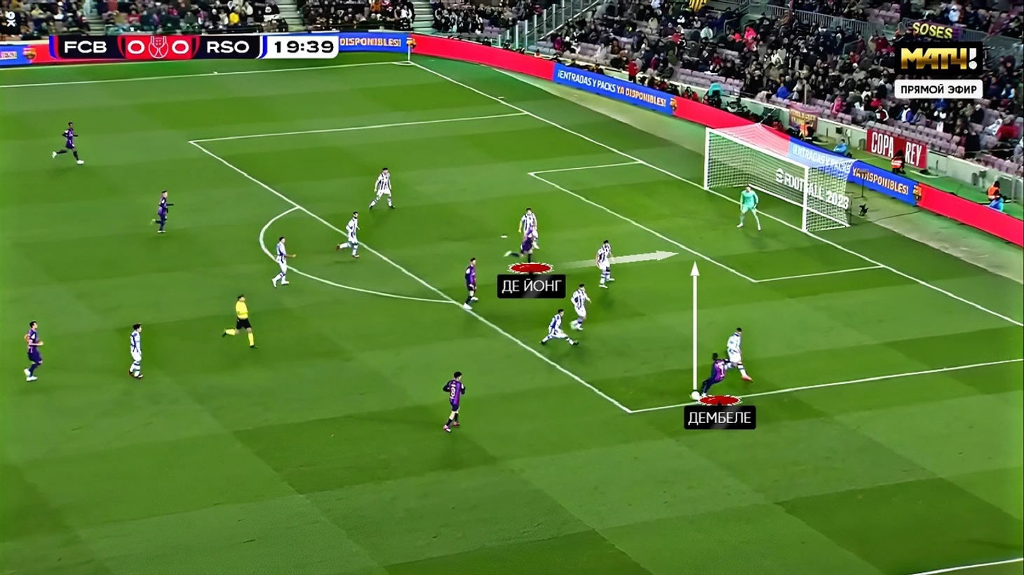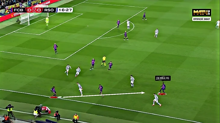 Ещё одна причина крутости Дембеле – смелость «Сосьедада» и то, как сложился матч. В самом намерении прессинговать «Барселону» нет ничего плохого – вспомните всю ту же игру с «Атлетико», где «матрасники» 70 минут играли лучше «Барсы» как раз благодарю интенсивному давлению. Но в данном случае, когда «каталонцы» адаптировали свои розыгрыши и преодолевали давление, Дембеле оказался в чуть ли не идеальных условиях – была возможность сыграть на пространстве: