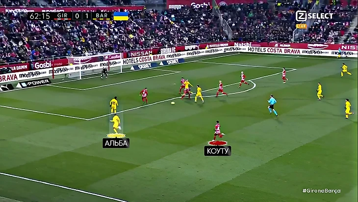 Матч можно разделить на два отрезка: до гола и после. До гола «Барса» владеет мячом и территорией, однако испытывает большие проблемы с созданием моментов. После гола роли изменились – теперь «Жирона» владеет мячом (!) и территорией и создаёт несколько опасных ситуаций у ворот тер Стегена.