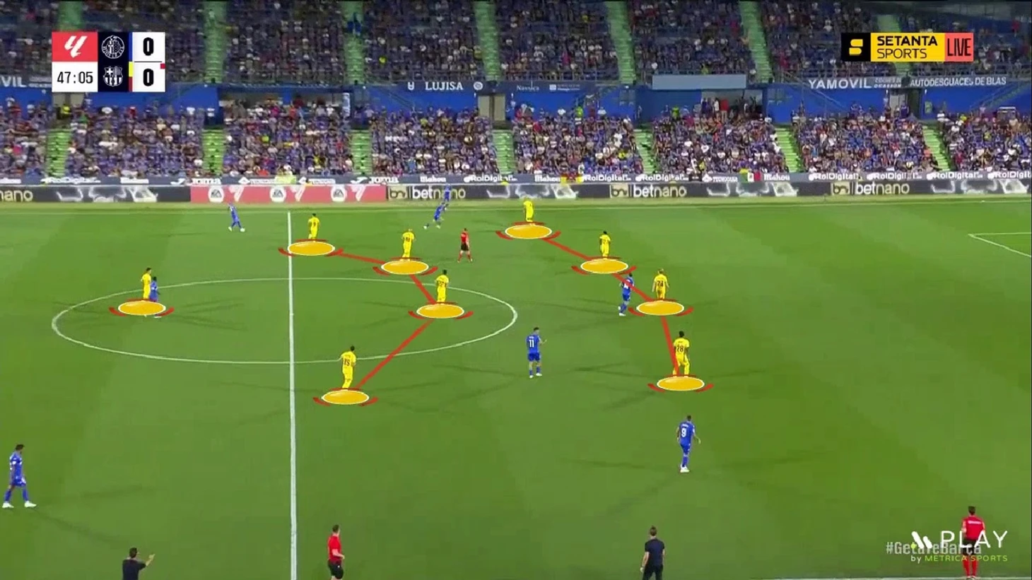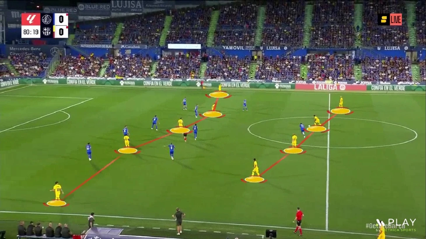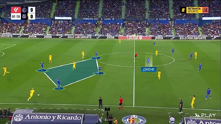 Прессинг «Хетафе» был в меру смелым – активно в нём участвовали 4 человека (Джене оставался сзади), но при этом старались работать интенсивно и компактно: