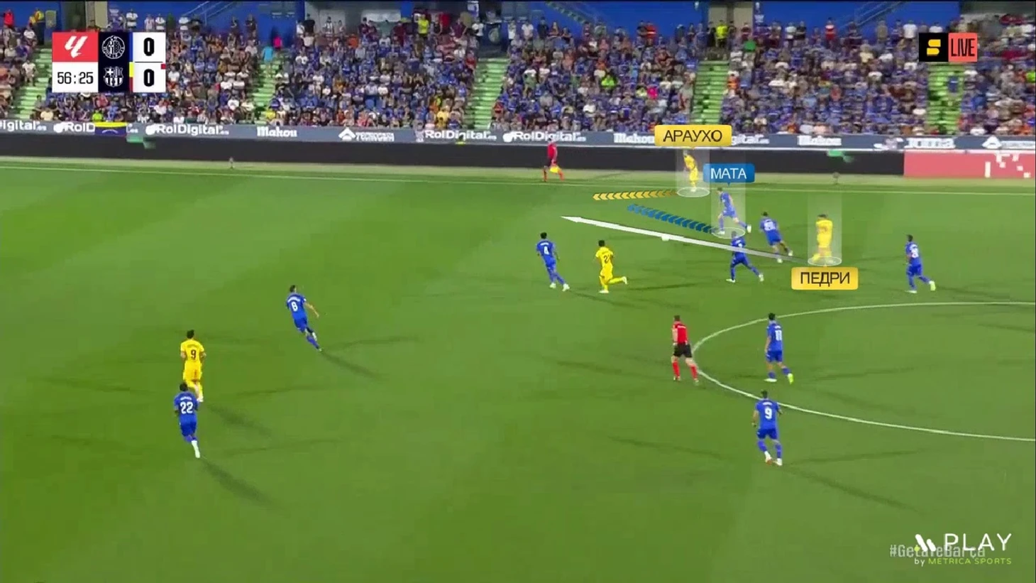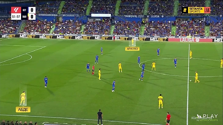 На другом фланге Араухо в роли вингера принёс едва ли не больше пользы, чем Абде слева. Благодаря работоспособности уругвайца «Барса» могла продолжать делать пятёрку в передней линии даже в меньшинстве. Именно из такой ситуации гости заработали удаление у «Хетафе» – Мата просто не успел за Рональдом и сфолил на вторую жёлтую: