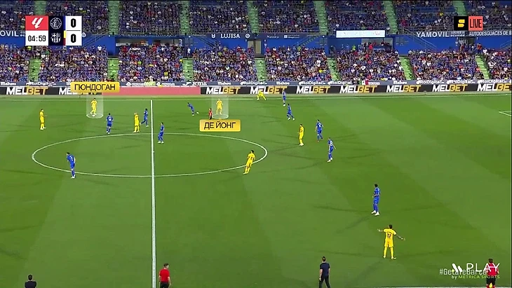 План «Барселоны» по вскрытию этих баррикад в основном заключался в ротациях и рывках в передней пятёрке. Вот, например, Гюндоган и де Йонг поменялись местами: