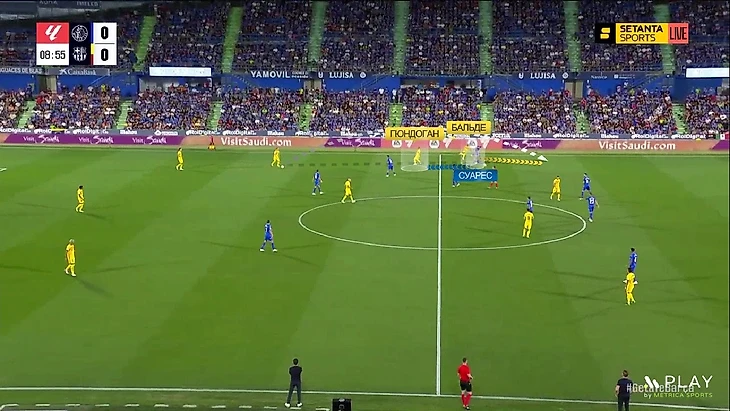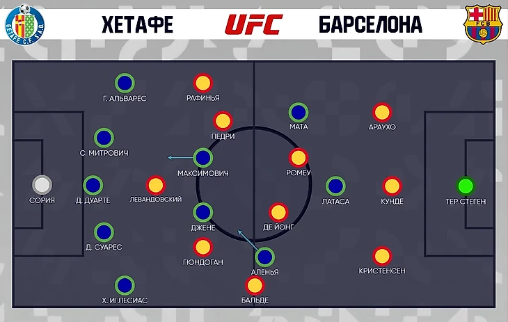 После перерыва Хави убрал Кристенсена и выпустил Абде. В пару к Кунде опустился де Йонг, рядом с Ромеу играл Гюндоган, а команда перестроилась на 4-4-1: