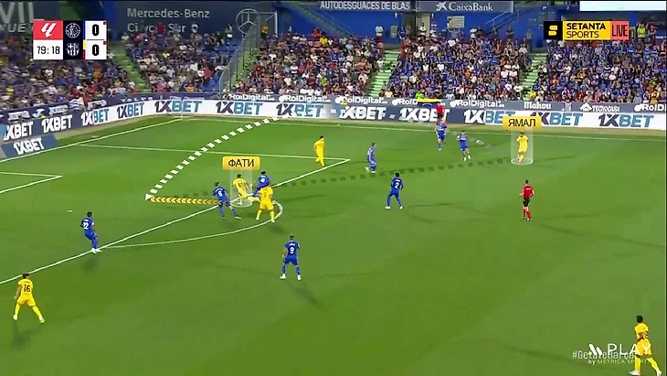Почти сразу Фати и Ямал организовали голевой момент: Ансу здорово ворвался в штрафную из глубины, а Ламин великолепно забросил на него: