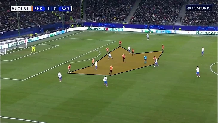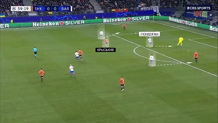 Это запутывало прессинг «Барсы» – игроки не всегда успевали перестраиваться и зачастую кто-то в билд-апе «Шахтёра» оказывался свободным: