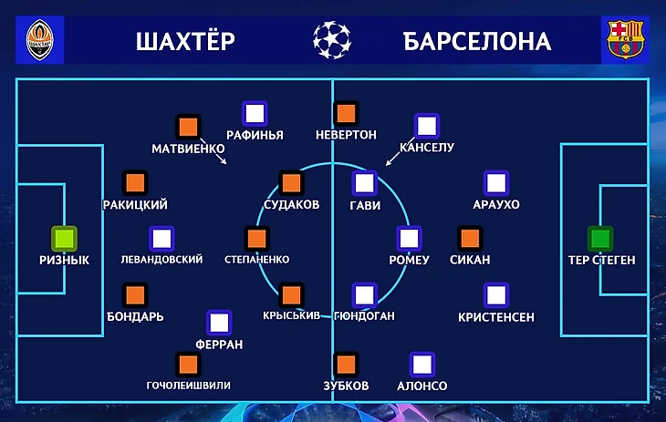 У «Барселоны» не были доступны только Роберто и де Йонг. Хави решил провести ротацию: на скамейке оказались Феликс, Кунде, Педри и Бальде. В старт вернулся Рафинья, а слева в атаке вышел Ферран Торрес. В общем, смешанный состав.