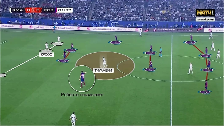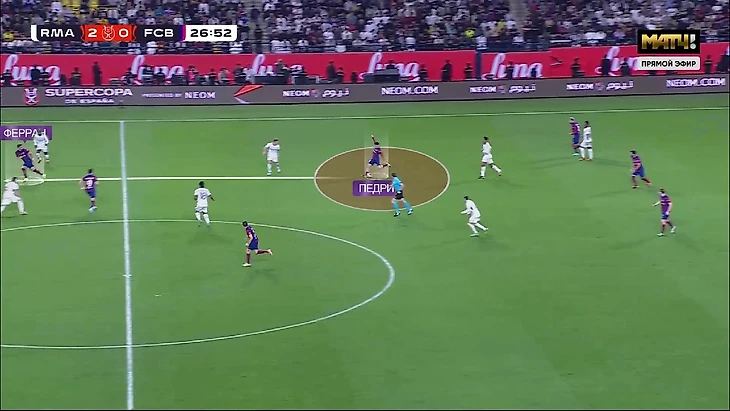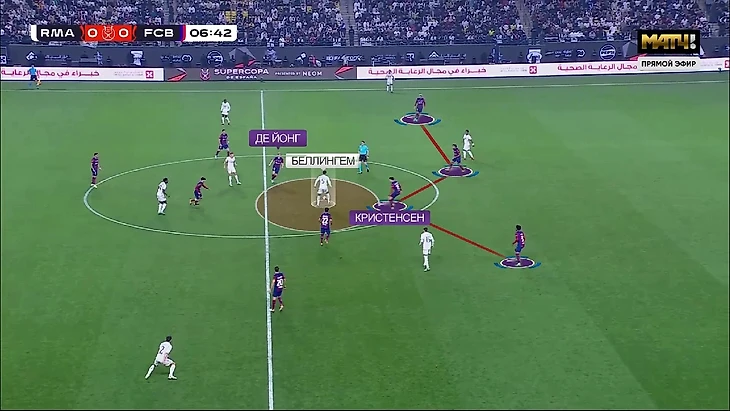 Но ужасы для «Барсы» на этом только начинаются. Со свободно движущимся Беллингемом и полной дезориентацией «Барселоны» в прессинге, «Мадрид» мало того, что имел преимущество в первой стадии, так ещё и в середине поля кто-то по цепочке обязательно оставался свободным.