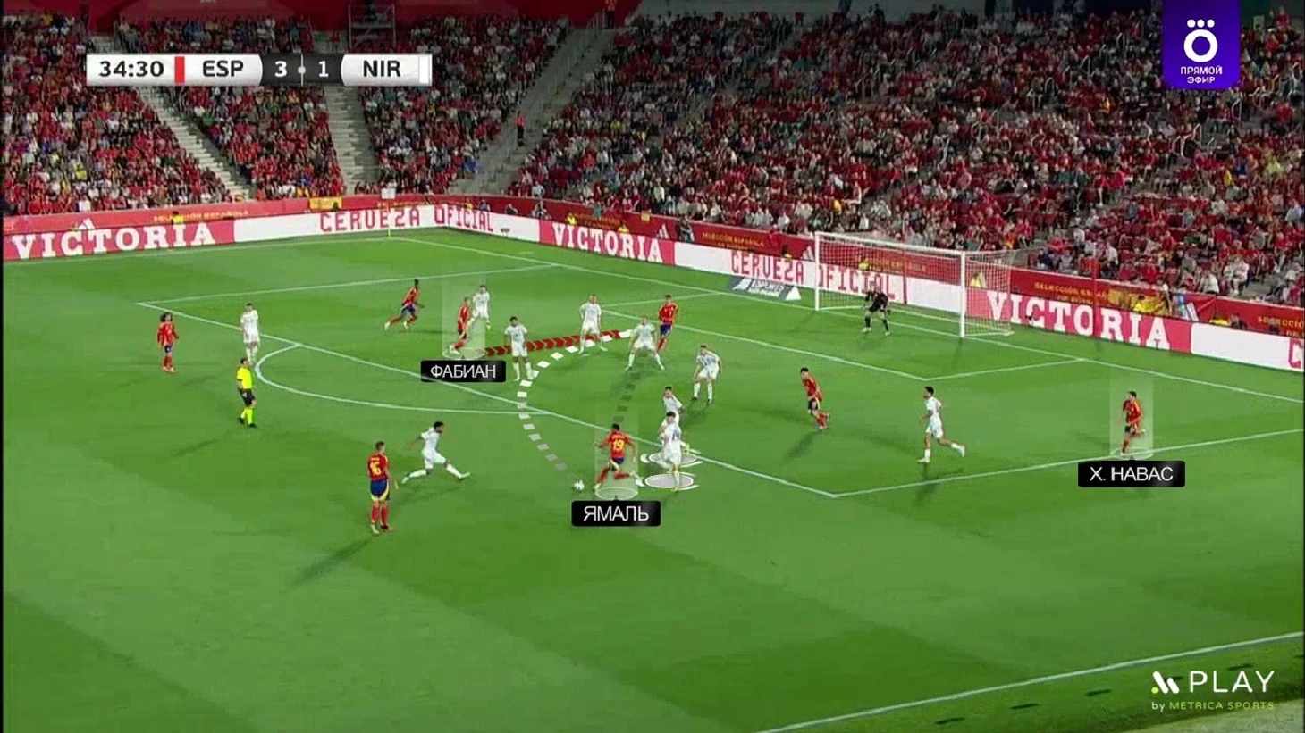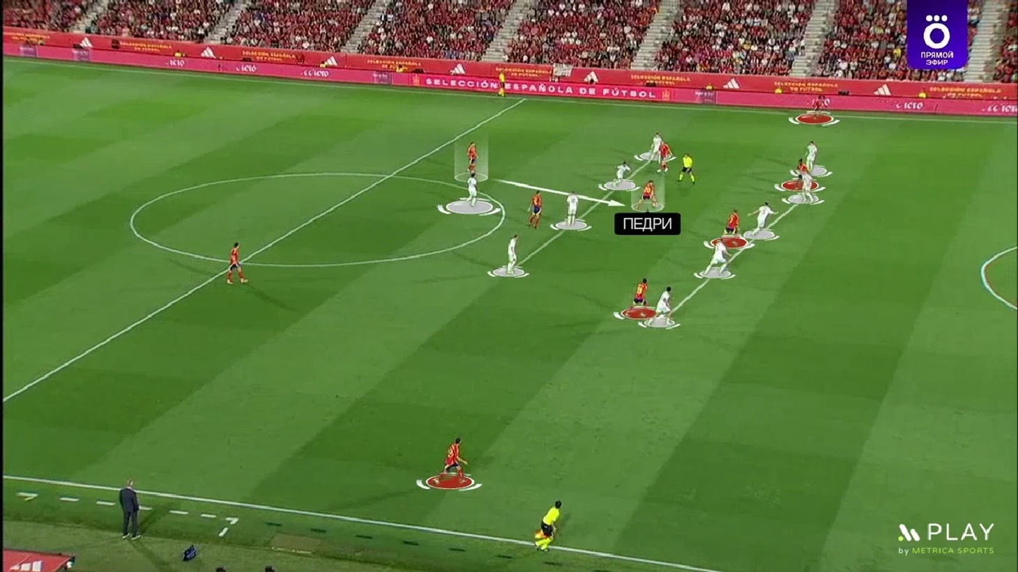 В сборной Педри по сути играет в роли десятки – двигается более свободно, плетет комбинации с партнерами в своем любимом левом полуфланге и часто сам подключается в штрафную. Отлично находит пространство между линий и получает там много мячей – так он забил гол в ворота Северной Ирландии: