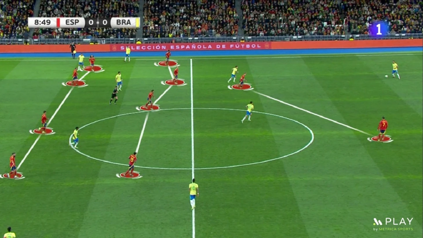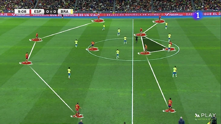 Попытаться разместить всех четырех игроков одновременно – не такая простая задача, как может изначально показаться. Для каждого из перечисленных футболистов наиболее удобный режим – игра в ширину. Из-за этого Испания несколько странно выглядит при владении мячом – не привычная для позиционного футбола структура вроде 3-2-5 или 2-3-5, а 4-1-5 со сдвоенными флангами: