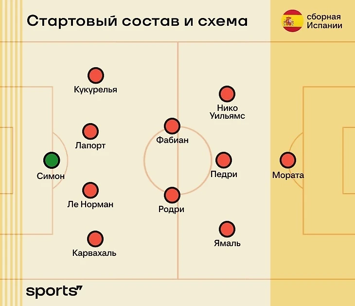 В атаке у испанцев тоже много опций, но основная тройка легко читается: Нико Уильямс слева, Альваро Мората в центре, Ламин Ямаль справа. План Б – Микель Ойярсабаль в роли ложной девятки вместо чистого форварда. Взрывные фланги – пожалуй, главное отличие этой Испании от своего катарского образца. Даже если команда инстинктивно скатится в такой же ватокат, как 2 года назад, то Нико и Ламин хотя бы иногда будут разбавлять эту тоску. Ну а если Испания будет еще и вести в счете, то эта парочка как следует проверит соперника на пространстве. Вполне возможно, что в следующем сезоне мы будем наблюдать этот дуэт каждую неделю.