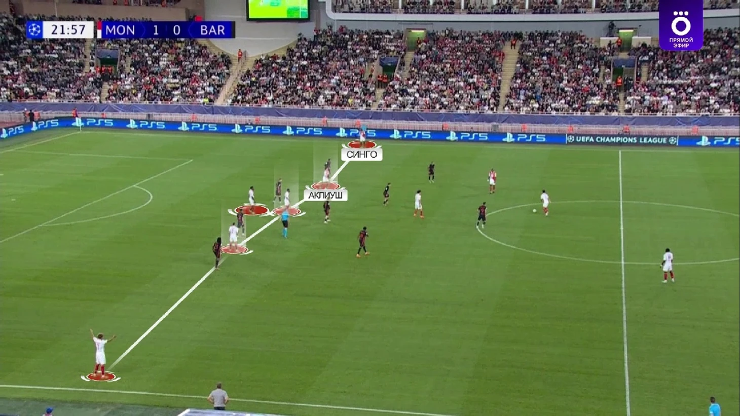Это помогло «Монако» открыть счет: Аклиуш принимает перевод, а Синго поддерживает француза – Бальде обороняется 1-в-2. Педри на всех парах мчится в штрафную помочь, успевает, но Аклиуш легко его обыгрывает и забивает: