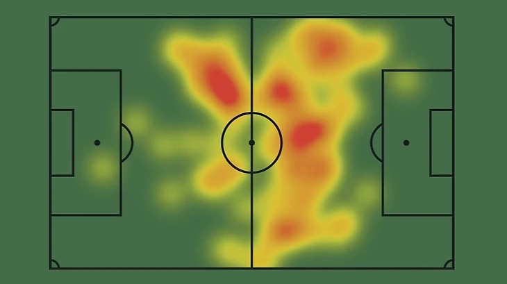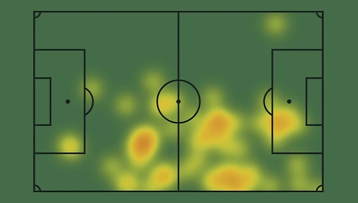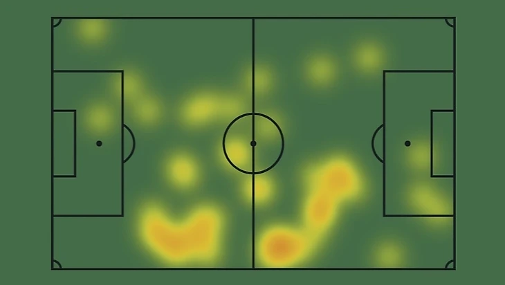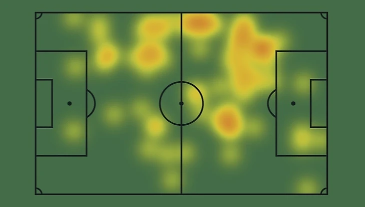 Ну и, разумеется, тепловая карта Педри в матче против «Сельты» в сравнении с матчем против «Бреста» – грандиозная разница: