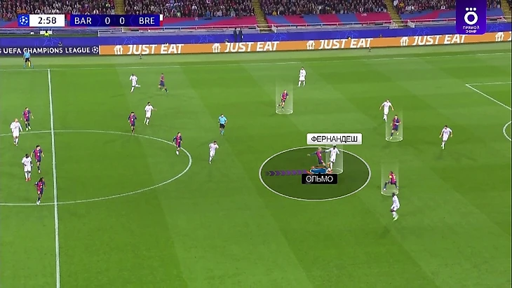 Этот яростный прессинг позволил как практически ничего не допустить у своих ворот, так и организовать немало атак на ворота гостей. «Брест» даже не пытался разыгрывать – просто выбивали вперед на Ажорка, поэтому мяч у команды совсем не держался (25% владения). Проверить пресловутую офсайдную ловушку Ханси Флика толком не смогли – банально из-за того, что таких возможностей практически не возникало. Итог – 79% наклон поля, 58:7 по касаниям в чужой штрафной. Все в пользу «Барселоны», разумеется. У «Бреста» за весь матч 2 удара в сторону ворот каталонцев.
