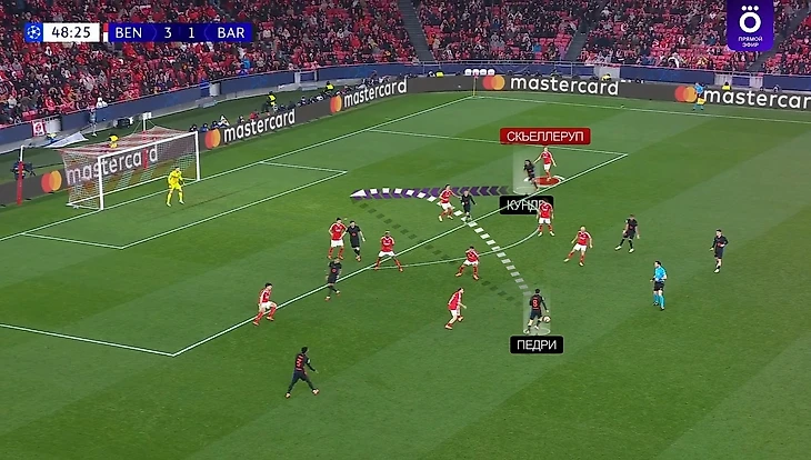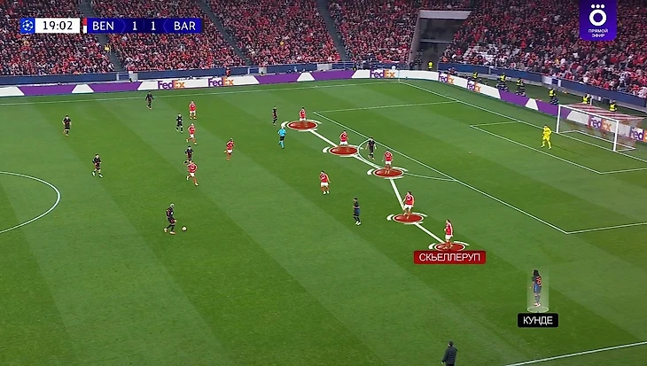 «Бенфика» не показала какой-то уникальный план по сдерживанию и вскрытию «Барселоны» – подобные элементы мы видели и от других соперников «блауграны». Бруну Лаже использовал конспекты других команд, игравших с «Барселоной» ранее в этом сезоне – это была подготовка очень высокого уровня. Однако это не принесло «Бенфике» перевеса по моментам.