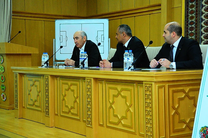 19 марта в конференц-зале Ашхабадской специализированной шахматно-шашечной школы состоялась встреча главного тренера казанского «Рубина» Курбана Бердыева с футбольной общественностью страны. В ней приняли участие тренера футбольных клубов и детских спортивных школ страны, руководители Федерации футбола Туркменистана и представители СМИ. В ходе встречи, которая вылилась в заинтересованную беседу о путях развития футбола в Туркменистане, Курбан Бердыев рассказал о своём тренерском пути, истории становления футбольного клуба «Рубин», собственном опыте стажировок в зарубежных клубах и ответил на многочисленные вопросы присутствующих.