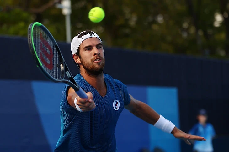 10:15. Хачанов сделал брейк и повел 6:5 в первом сете.