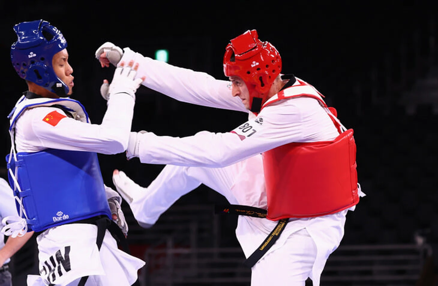 10:10. Владислав Ларин против китайца Сунь Хонджи из Китая. Полуфинал по тхэквондо в весе свыше 80 кг.