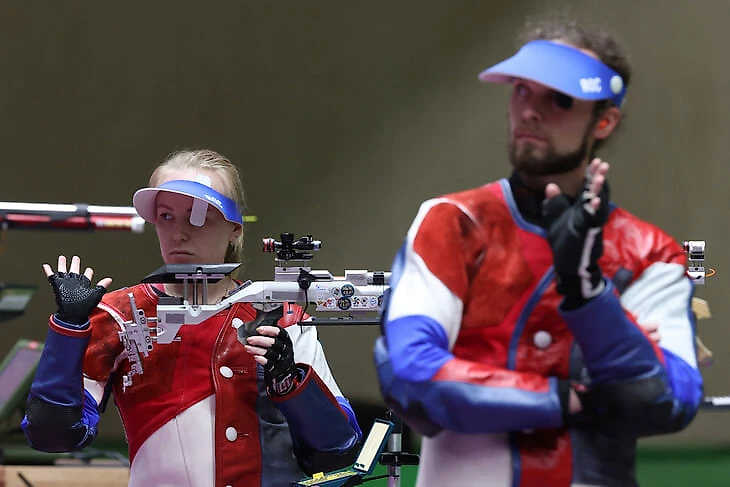 7:55. Галашина и Масленников показали 4-й результат в квалификационной стрельбе из воздушки на 10 м, а Каримова и Каменксий – 6-й. Обе пары прошли в следующий этап, который начнется в 8:00 (мск).