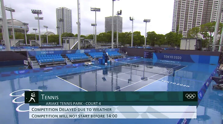 7:24. А на открытом корте матчи были отложены из-за погоды. Карацев ведет 3:2 и 40-0 на своей подаче в первом сете у Жереми Шарди из Франции, но придется подождать.