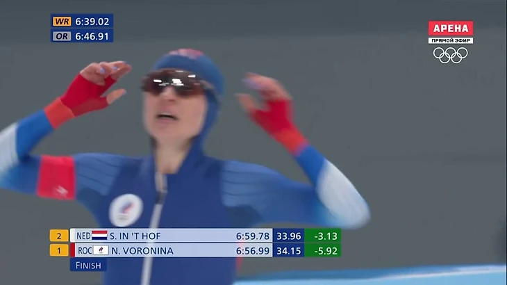 В забеге Ворониной и нидерландки Санне ин 'т Хоф. Не со стороны нашей спортсменки!