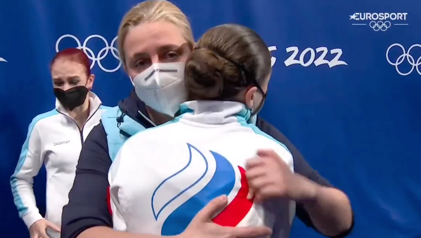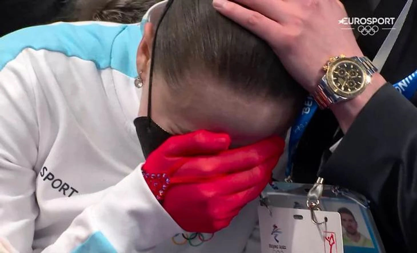 Пока истерила Трусова, в метре от нее Камилу Валиеву успокаивала шеф спортивных проектов Первого канала Ольга Черносвитова: