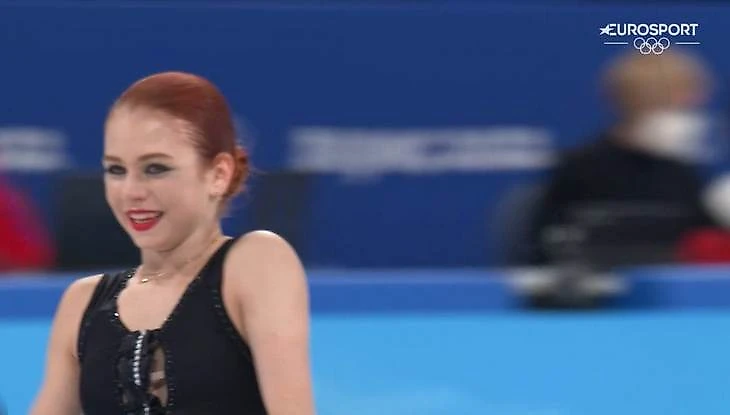 Четверной сальхов – ✅ Тройной аксель – ошибка, коснулась льда рукой Четверной тулуп и тройной тулуп – ошибка на приземлении и падение Тройной риттбергер – падение