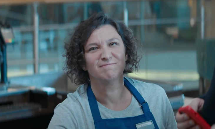 Сценка на кассе супермаркета с багетами, паштетами, шампиньонами, круассанами, устрицами и сырами. Где Дмитрий Нагиев – oui oui – влюбился в кешбэк.