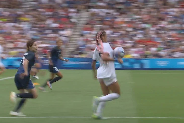 Интересный момент в женском футбольном четвертьфинале Олимпиады-2024. Сборная США забила решающий, чудом избежав офсайда.