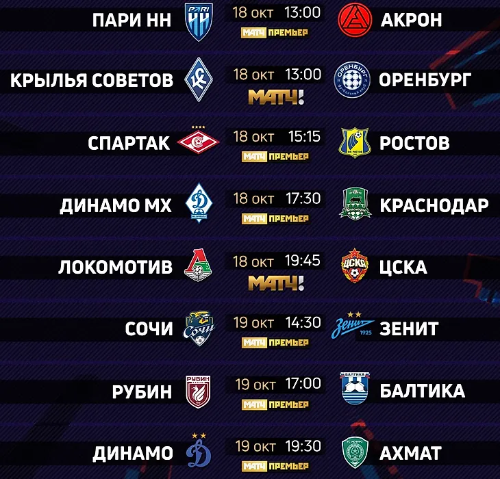 Автор TveVol7 Расписание матчей 12-го тура РПЛ