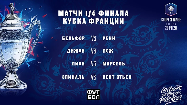 Уже сегодня 11.02.2020г состоится первый четвертьфинальный матч турнира, в 22-55 сыграет действующий обладатель трофея «Ренн». Завтра зрители смогут увидеть игру чемпиона Франции «ПСЖ», который встретится с «Дижоном», а также противостояние «Марселя» и «Лиона». А уже в четверг сыграют «Эпиналь» и «Сент-Этьен». Все эти матчи, как и игры на дальнейших стадиях турнира вы сможете увидеть в прямом эфире на Телеканале «Футбол».