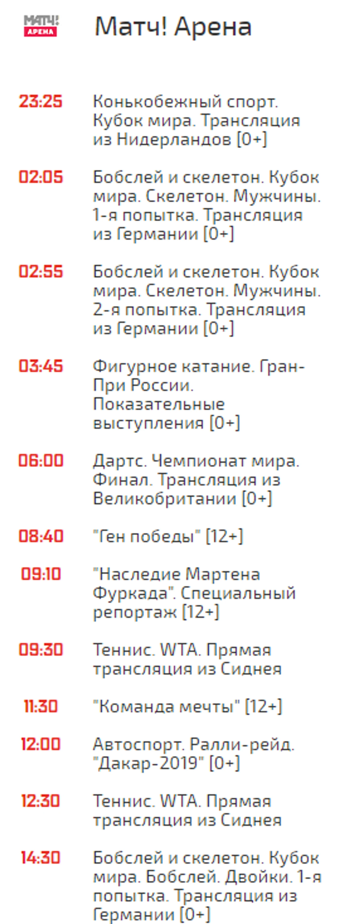 Чтобы не быть голословным, вот как выглядела программа ТК Матч Арена на утро среды: