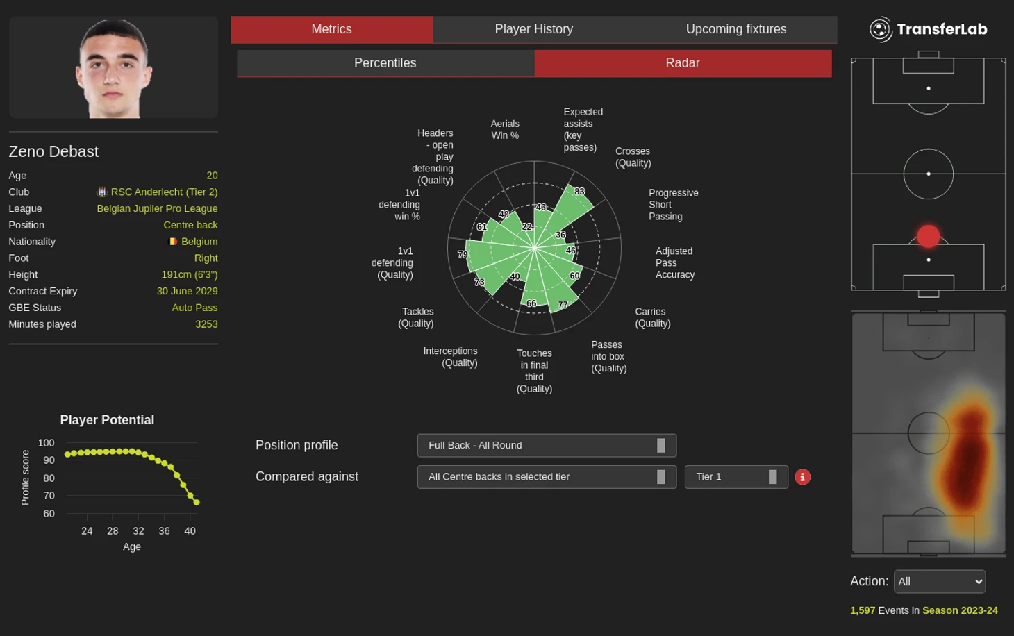 20-летний Зено Дебаст, которому недавно стукнуло 21, перешёл в стан «львов» летом 2024-го года из бельгийского «Андерлехта» за €15.5. млн. Молодой, рослый (191 см) и умный центральный защитник к моменту перехода уже успел 10 раз выйти в составе основной сборной Бельгии. В чемпионате Зено не всегда выходит в старте, а вот в Лиге Чемпионов из пяти матчей пропустил только игру с «Арсеналом». Текущая трансферная стоимость – €22 млн.
