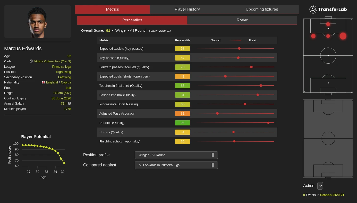 Возможно, одним из самых ярких примеров эффективности данного подхода является история Маркуса Эдвардса. Англичанин очень высоко котировался ещё в академии «Тоттенхэма», но он так и не смог ни пробиться в основной состав «шпор», ни проявить себя в арендах в «Норвиче» (1 игра, 0+0) и голландском «Эксельсиоре» (28 игр, 2+4). В итоге, с молодым дарованием «Тоттенхэм» не стал продлевать контракт, и он ушёл на правах свободного агента в португальскую «Виторию Гимараэш». В составе «Витории» он вышел на поле 96 раз за 2.5 сезона, забил 20 мячей и отдал 14 голевых передач. Угу Виана посчитал такое выступление достойным €7.75 млн, которые «Спортинг» выплатил «Витории» в январе 2022-го года.