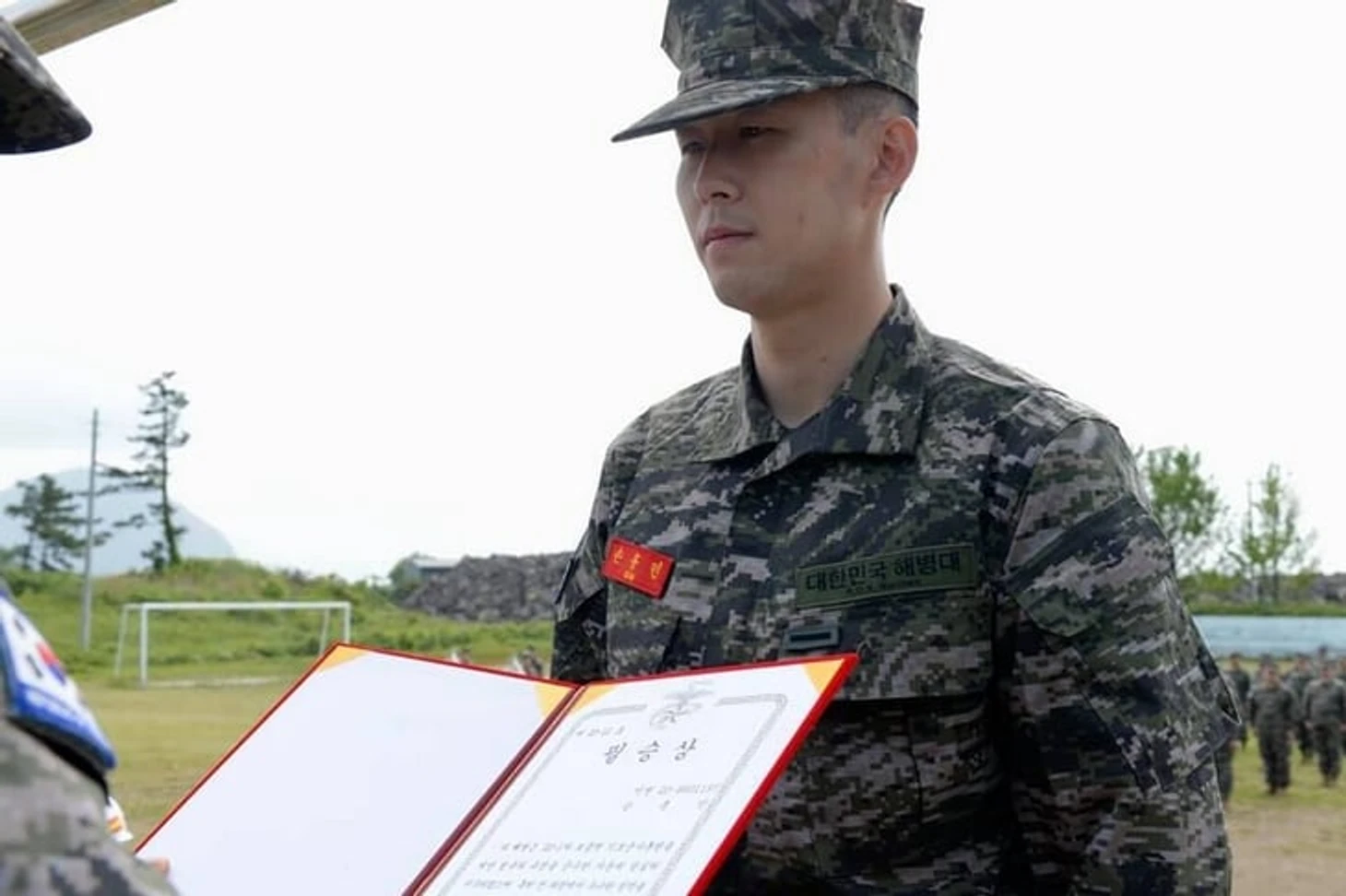 27-летний футболист, восстановившийся после перелома руки, отслужил в воинской части морской пехоты на острове Чеджу (Чеджудо), популярном туристическом месте в Азии, ежегодно его посещают 4 млн туристов. Кажется, звезда служил наравне с остальными (хотя подразделение, возможно, и для элиты).