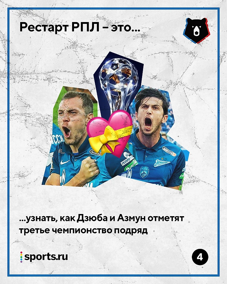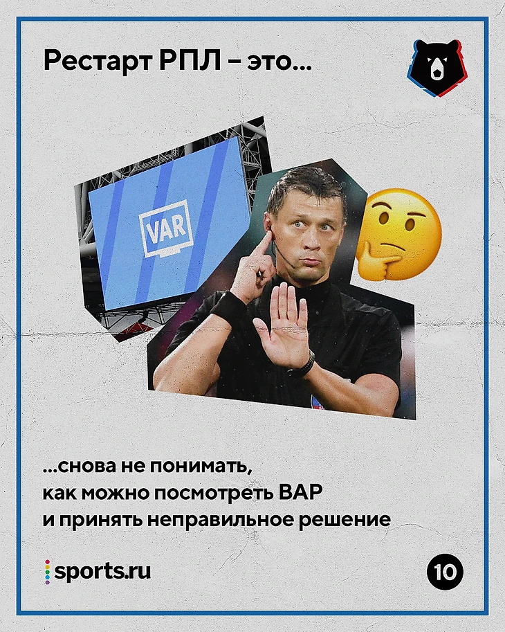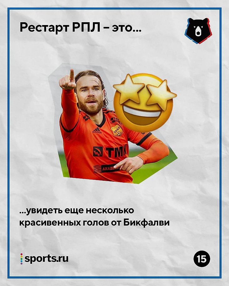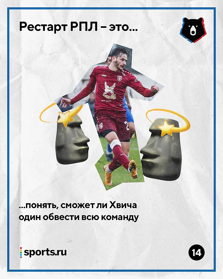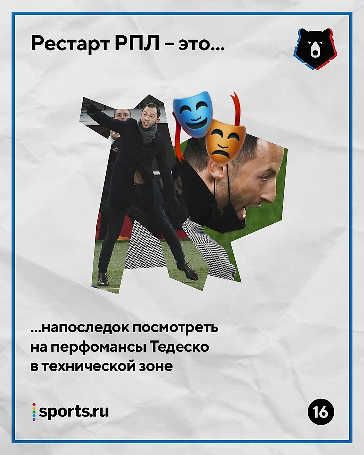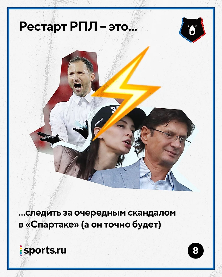 Мы очень ждали возобновления РПЛ и по этому поводу подготовили 20 карточек, на которых расписали причины следить за вернувшейся лигой и кайфовать от каждой игры. Обязательно посмотрите их все, а потом напишите в комментариях, почему вы ждали камбэк РПЛ и что хотите увидеть в матчах чемпионата сильнее всего.