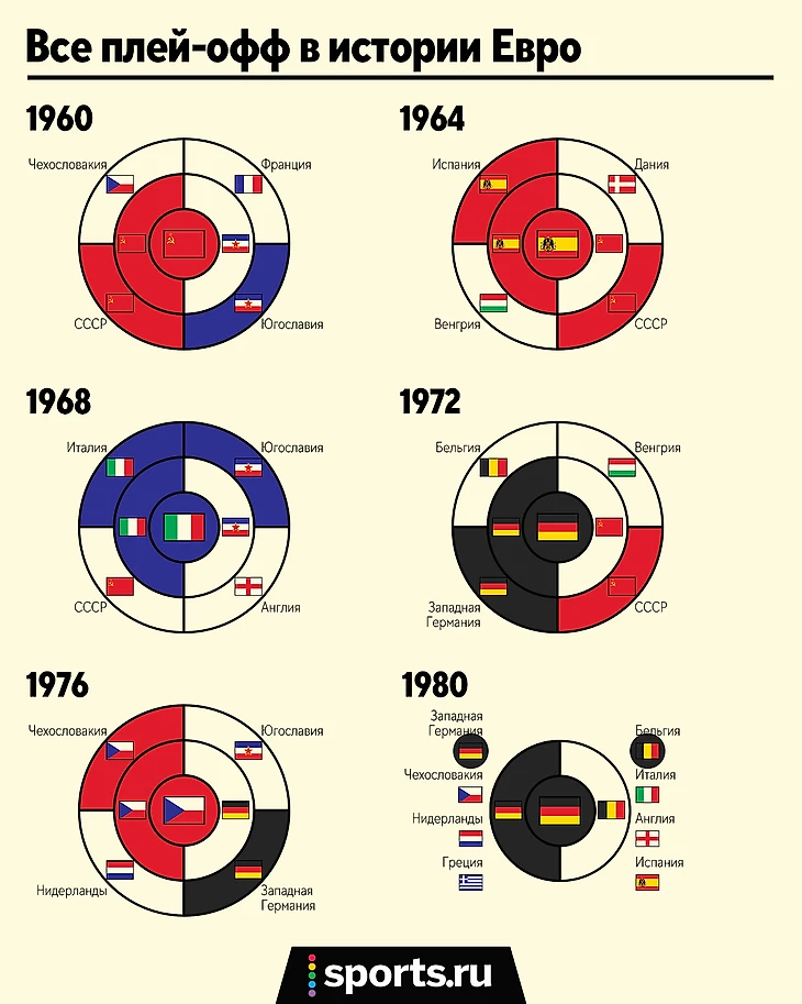 Диаграммы с участниками плей-офф всех чемпионатов Европы. Да, прям с 1960 года!