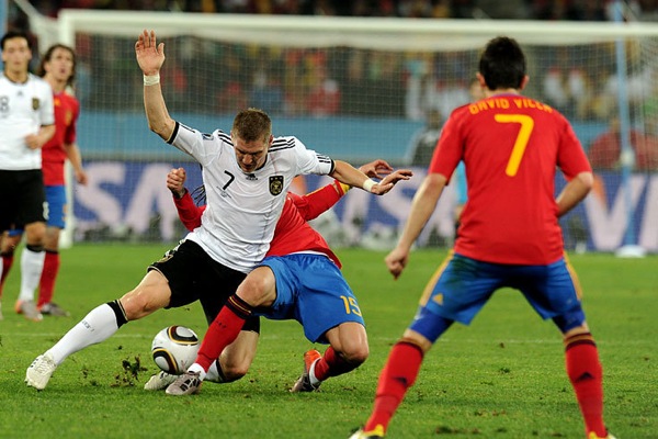 Отличным примером подобного развития событий был и ЧМ 2010-ого года. Отборочный этап немцы прошли относительно легко. Из группы «Бундестима» вышла, как ни странно, с такой же ситуацией, как и в предыдущем международном турнире. Плей-офф для команды начался опять же с фееричного успеха: крупные победы над сборной Англии, а затем и над национальной сборной Аргентины. Но в полуфинале команду опять поджидали испанцы, которые вновь одержали победу с тем же счетом. Команды снова выбыла из гонки.
