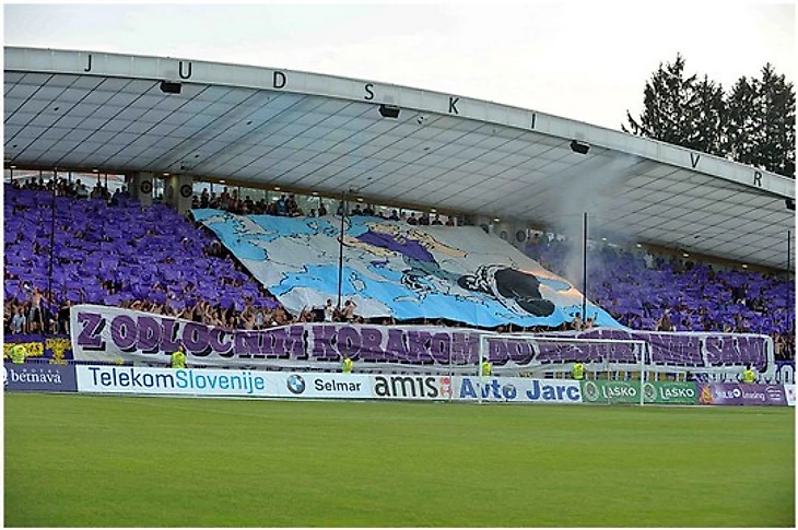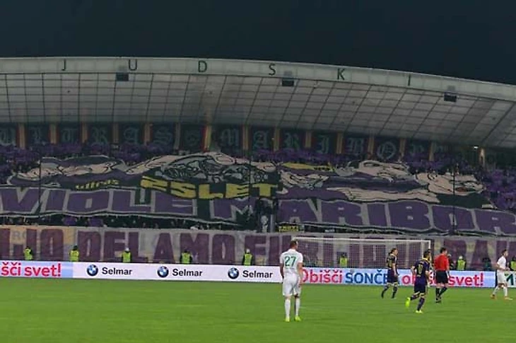 Напоследок для вас небольшая фотоподборка трибуны фанатов "Марибора" и деятельности её главной ультрас-группы "Виоле Марибор". Ну и вперёд, "Спартак"!