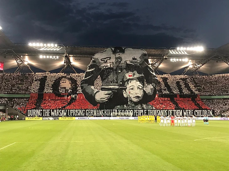 Также надо отметить тот факт, что это уже далеко не первый мощный патриотический перфоманс "легионистов". Год назад они отметили очередную годовщину Варшавского восстания перфомансом "Во время Варшавского восстания немцы убили 160.000 человек, тысячи из них были детьми!" (подробнее об этом перфомансе читайте тут: https://www.sports.ru/football/blogs/1359379.html).